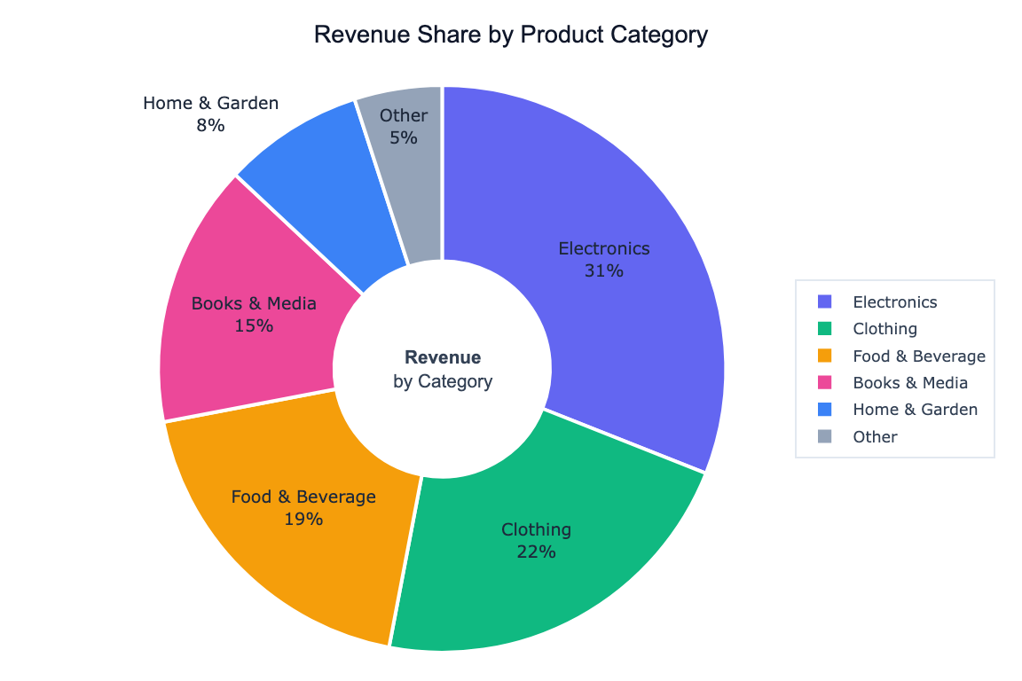 Can I use custom colors? Yes — specify colors in your prompt, e.g. "use blue for Online, red for In-Store, green for Wholesale", or ask for a named color palette.