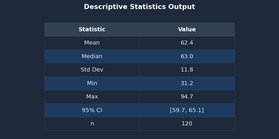 Does it explain the results in plain English? Yes — every output includes a plain-language interpretation alongside the statistical values, so you understand what the numbers actually mean.