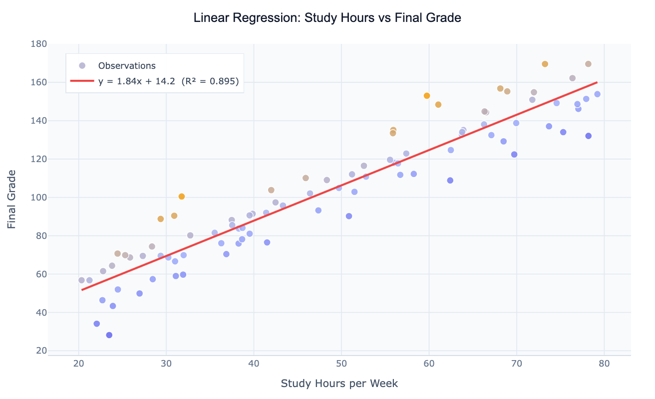 What's the difference between linear regression and correlation? Correlation measures the strength and direction of a relationship. Linear regression quantifies the exact slope and lets you make predictions. They are related but answer different questions.